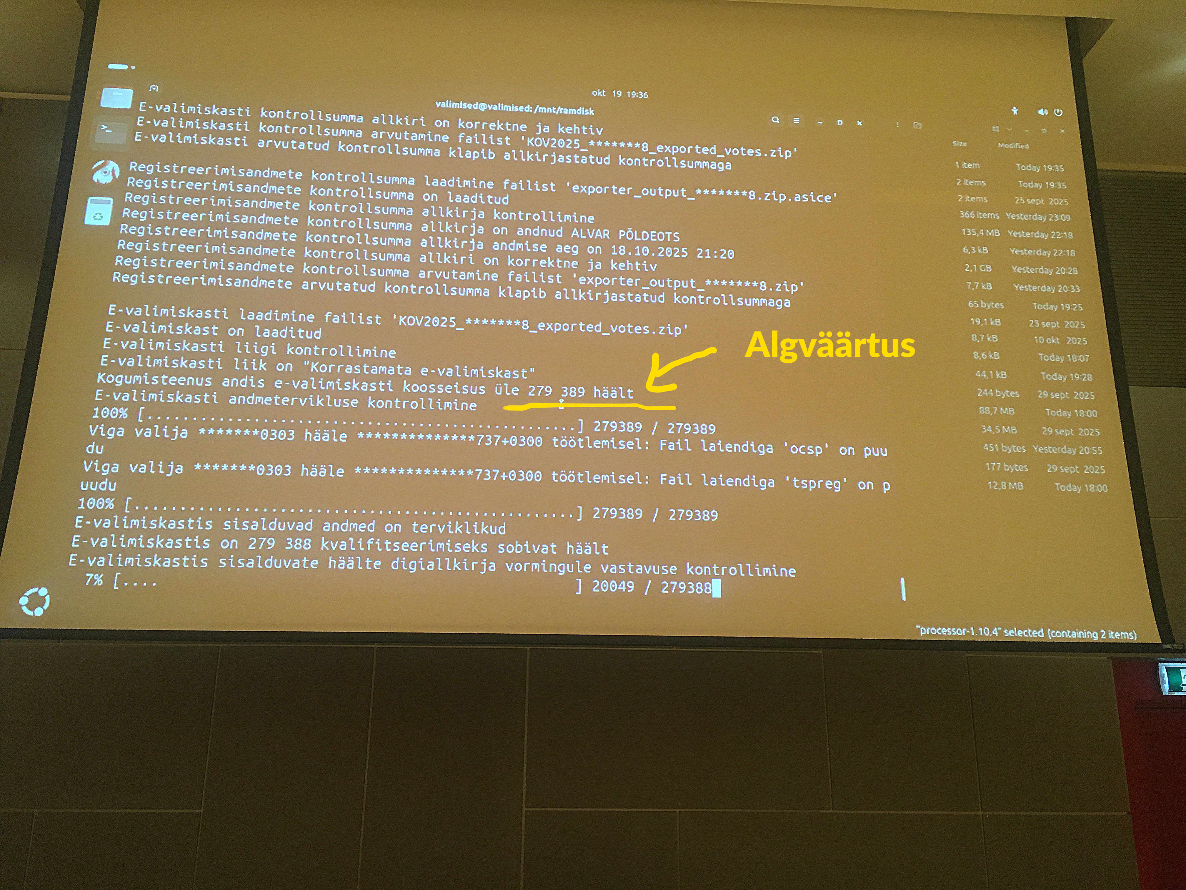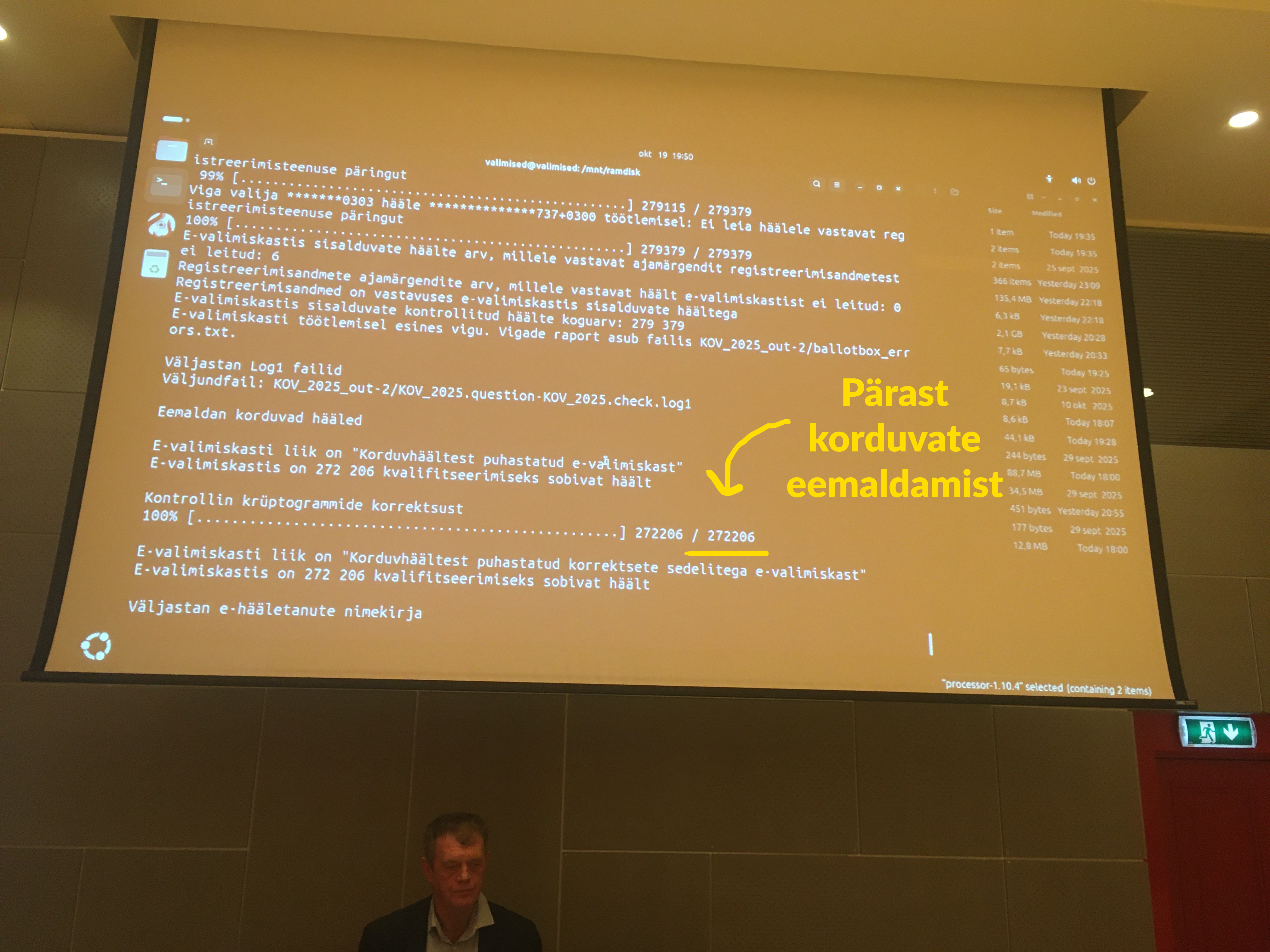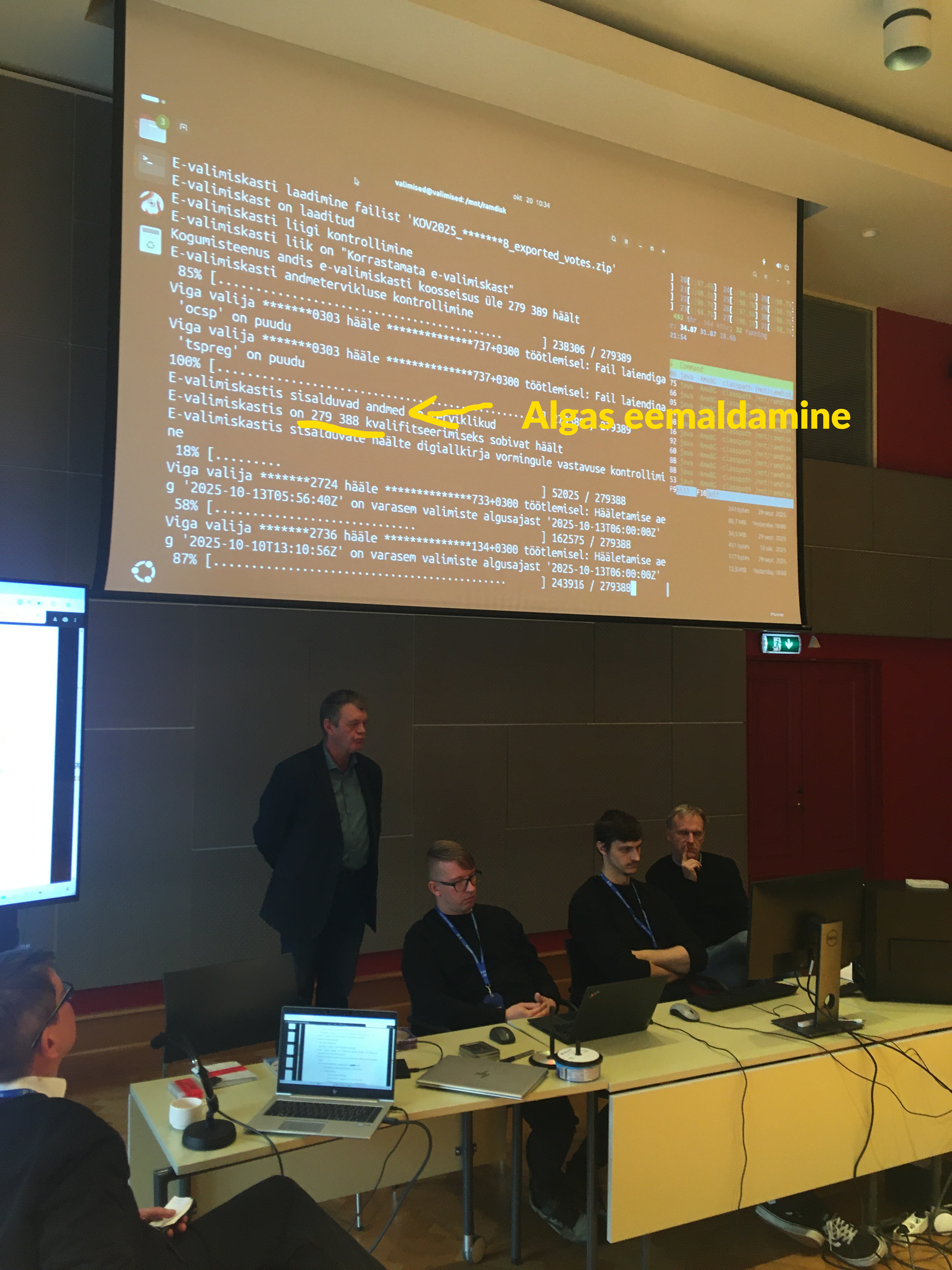 Seda seadus ette ei nĂ€e ja kui RVT-s ei ole just tööl selgeltnĂ€gijat, siis ei ole muuga vĂ”imalik seletada, kuidas oli juba 18.10 teada arv 272 206, mis on konkreetse teate kontekstis kĂŒll samuti vale, sest koguarv pidi olema 279 389, aga langeb kahtlaselt kokku lĂ”pliku eâhÀÀletajate arvuga, mis pidi selguma alles jĂ€rgmisel pĂ€eval: