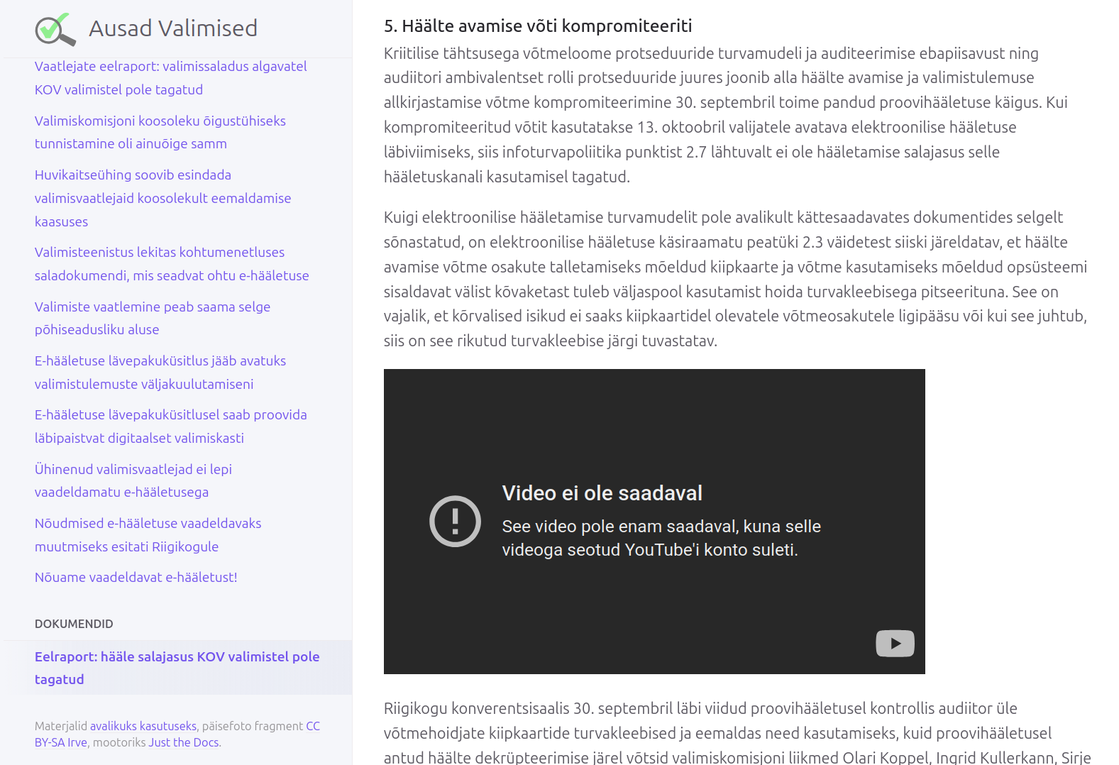 Kui mu kanalile said saatuslikuks viimaste KOV valimiste ajal MTÜ Ausad Valimised egiidi all loodud ja valimisteenistusele tuska valmistanud valimisvaatluse videod, siis pole see markantne ainult kodanikuühiskonna vaigistamise ja tsensuuri elementide tõttu – sümboolne on, et riiklikult kureeritud netihääletus asub sööma iseenda aluseks olevat vaba Internetti.