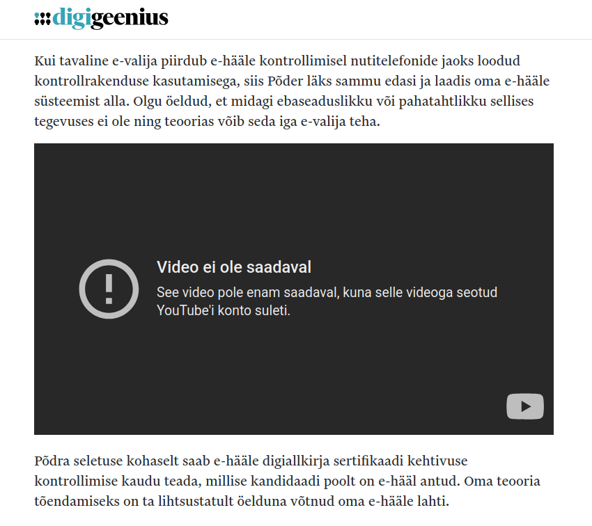 “Riigi valimisteenistus ei halda Youtube ega tee nende üle järelevalvet. Saamaks teada, milliste kogukonna reeglite vastu eksitud on, tuleks pöörduda Youtube poole.”
