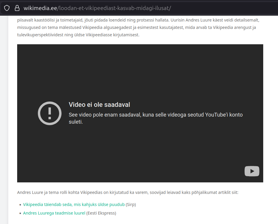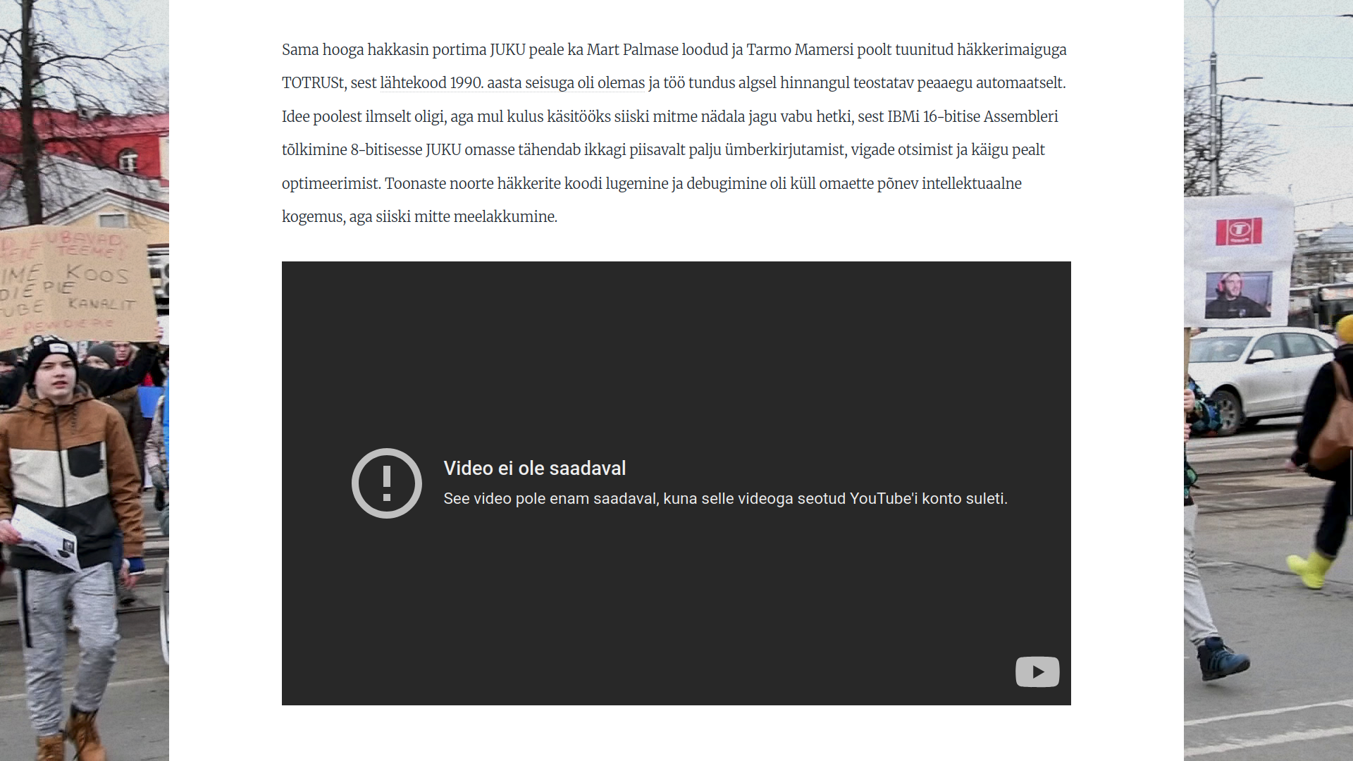 “See video pole enam saadaval, kuna selle videoga seotud Youtube’i konto suleti.”